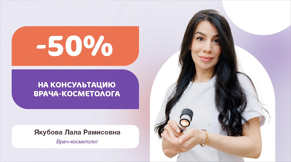 Приглашаем вас на консультацию врача-косметолога + диагностику состояния кожи с использованием видеодерматоскопа со скидкой 50%. Цена по акции 2 500 руб. (до скидки 5000 руб.)