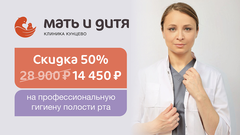 При записи на консультацию к врачу‑стоматологу Малакеевой А.Е. скидка 50% на профессиональную гигиену полости рта 28 900 ₽ 14 450 ₽