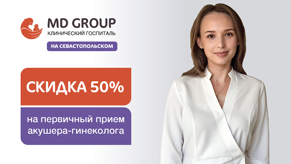 До 31 декабря 2025 года в выходные и праздничные дни действует акция: пациентам, впервые обращающимся в КГ «MD GROUP», предоставляется скидка 50% на первичный прием врача акушера-гинеколога.
