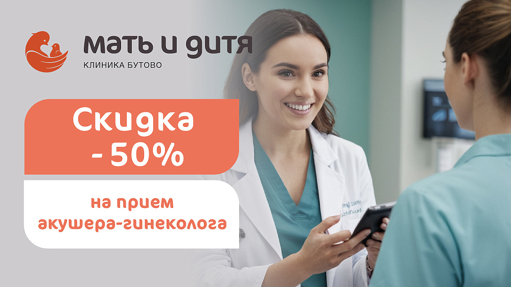 Здоровье женщины требует особенного внимания в любом возрасте. Клиника «Мать и дитя» Бутово приглашает вас на первичный прием акушера-гинеколога со скидкой 50%.