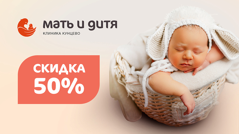 Если Ваш малыш родился 1 - 8 января 2025 года дарим разовую 50% скидку на консультацию (осмотр амбулаторно) педиатра.