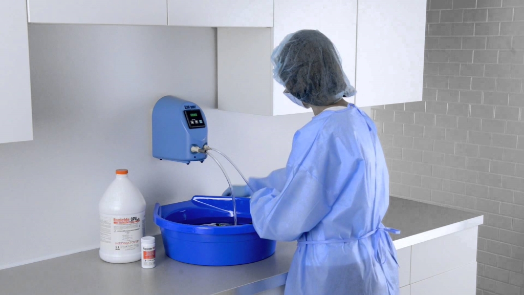 Промывание каналов эндоскопа водой, дезинфицирующими растворами и просушка спиртом при предварительной и окончательной очистке проводится с помощью специального устройства Scope Buddy Medivators (США). Его главное достоинство — полная и качественная обработка оборудования.