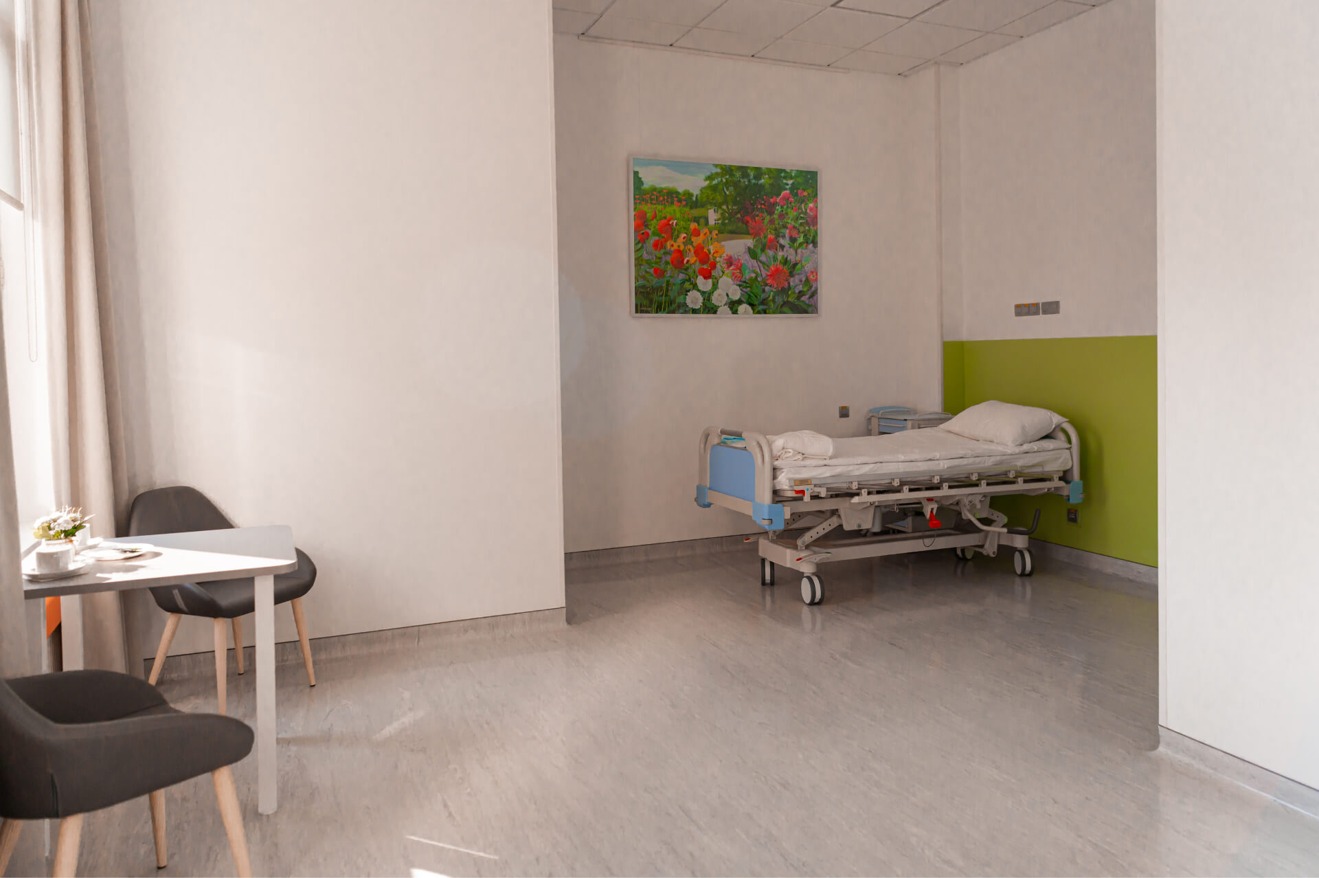 - Только одноместные палаты, оборудованные всем необходимым для комфортного пребывания. Возможно пребывание в апартаментах с несколькими спальнями и двумя санузлами.