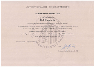• 2011г-летняя школа по неотложной медицине Европейской ассоциации медицинских студентов и Загребского университета (г. Дубровник, Хорватия)