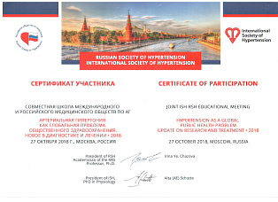 • 2018г- совместная школа международного и российского медицинского общества по артериальной гипертонии (РМОАГ)