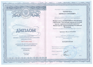 • 2012-2014гг- клиническая ординатура ( специальность «кардиология»), Российский кардиологический научно-производственный комлекс Минздрава России (в н.вр. «НМИЦ кардиологии им. Акад. Е.И. Чазова» Минздрава России)