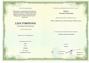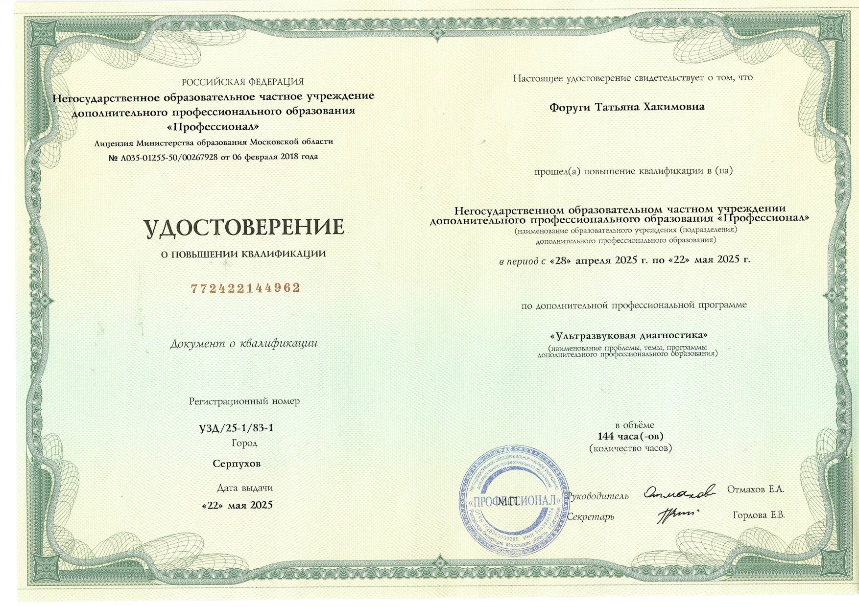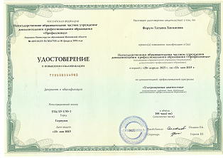 • 2025 г. - повышение квалификации по программе "Ультразвуковая диагностика"