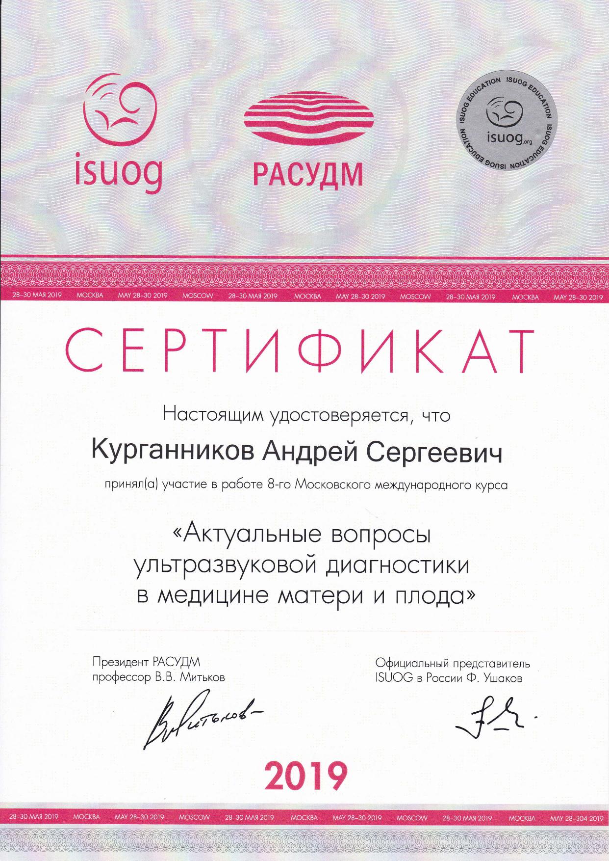 2019 г. - 8-й Московский международный учебный курс под эгидой ISUOG И РАСУДМ «Актуальные вопросы ультразвуковой диагностики в медицине матери и плода»
