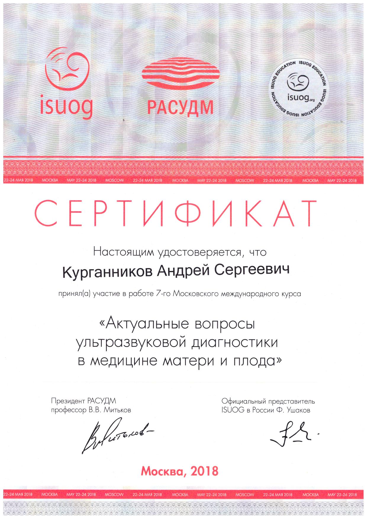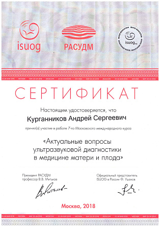 2018 г. - 7-й Московский международный учебный курс под эгидой ISUOG И РАСУДМ «Актуальные вопросы ультразвуковой диагностики в медицине матери и плода»