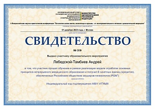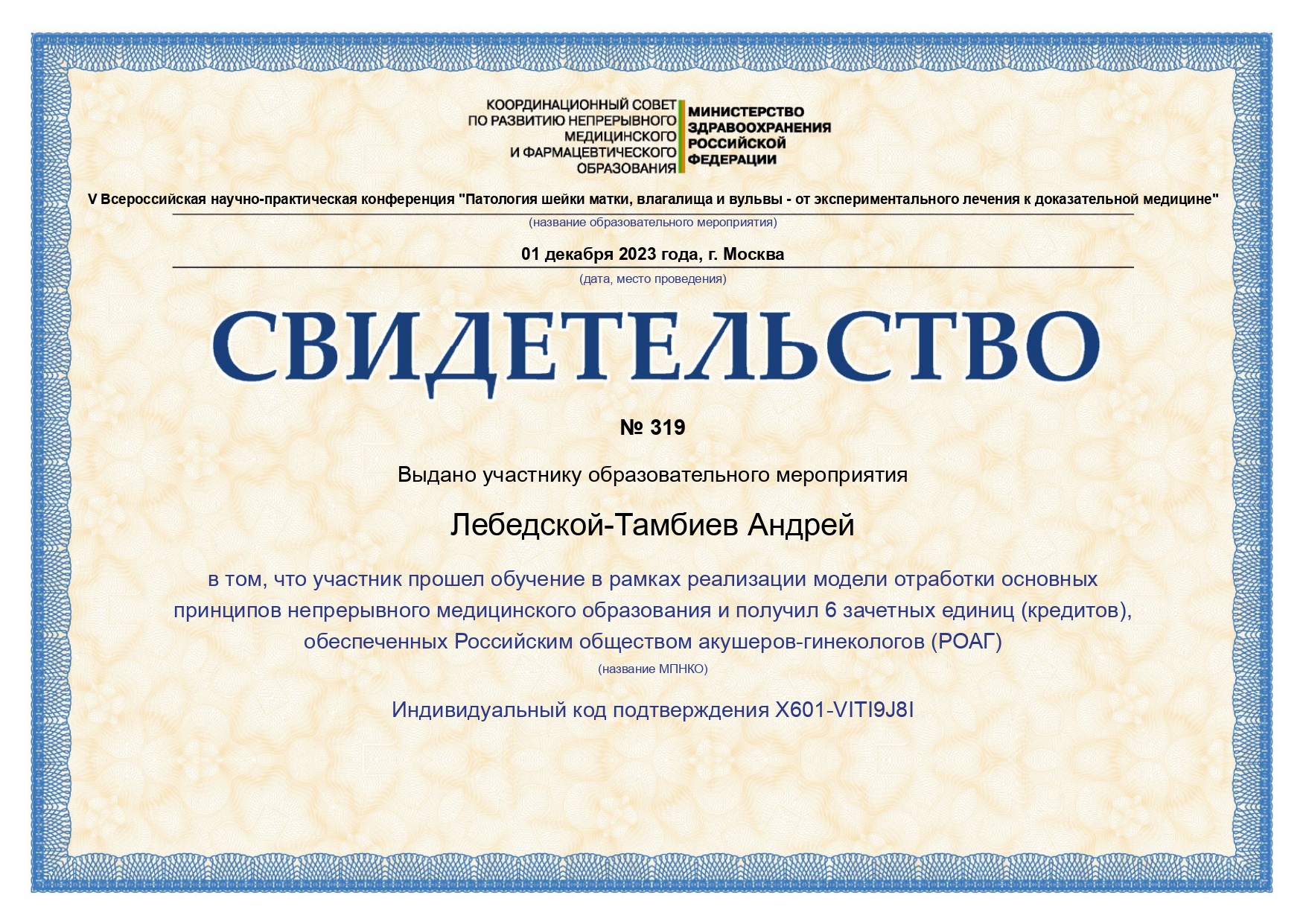 Награжден знаком «Отличник здравоохранения» Министерства Здравоохранения Российской Федерации