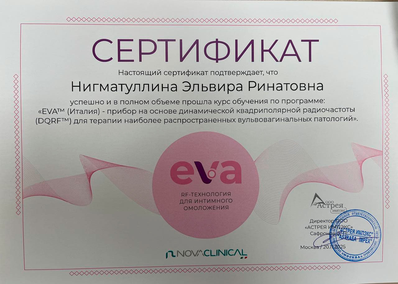 - 2024 г. - ДПО, Применение современных технологий в эстетической гинекологии- Частное образовательное учреждение ДПО «Академия медицинского образования им. Ф.И. Иноземцева»