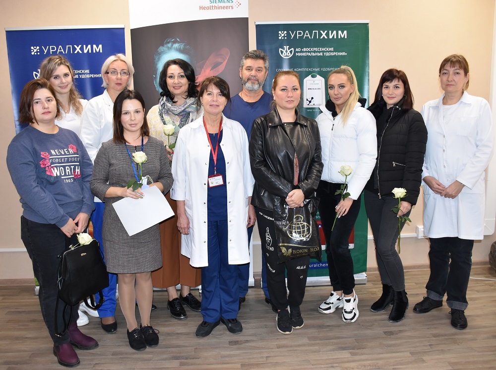 В рамках поддержки Всемирного месяца борьбы с раком груди компания Siemens Healthineers совместно с сотрудниками Онкологического центра клинического госпиталя «Лапино» ГК «Мать и дитя» провели ультразвуковой скрининг молочных желез для сотрудниц завода «Воскресенские минеральные удобрения» (группа «Уралхим»). Каждый желающий смог пройти скрининг на выявление патологии молочных желез, который проводился на высокоточных сканерах.